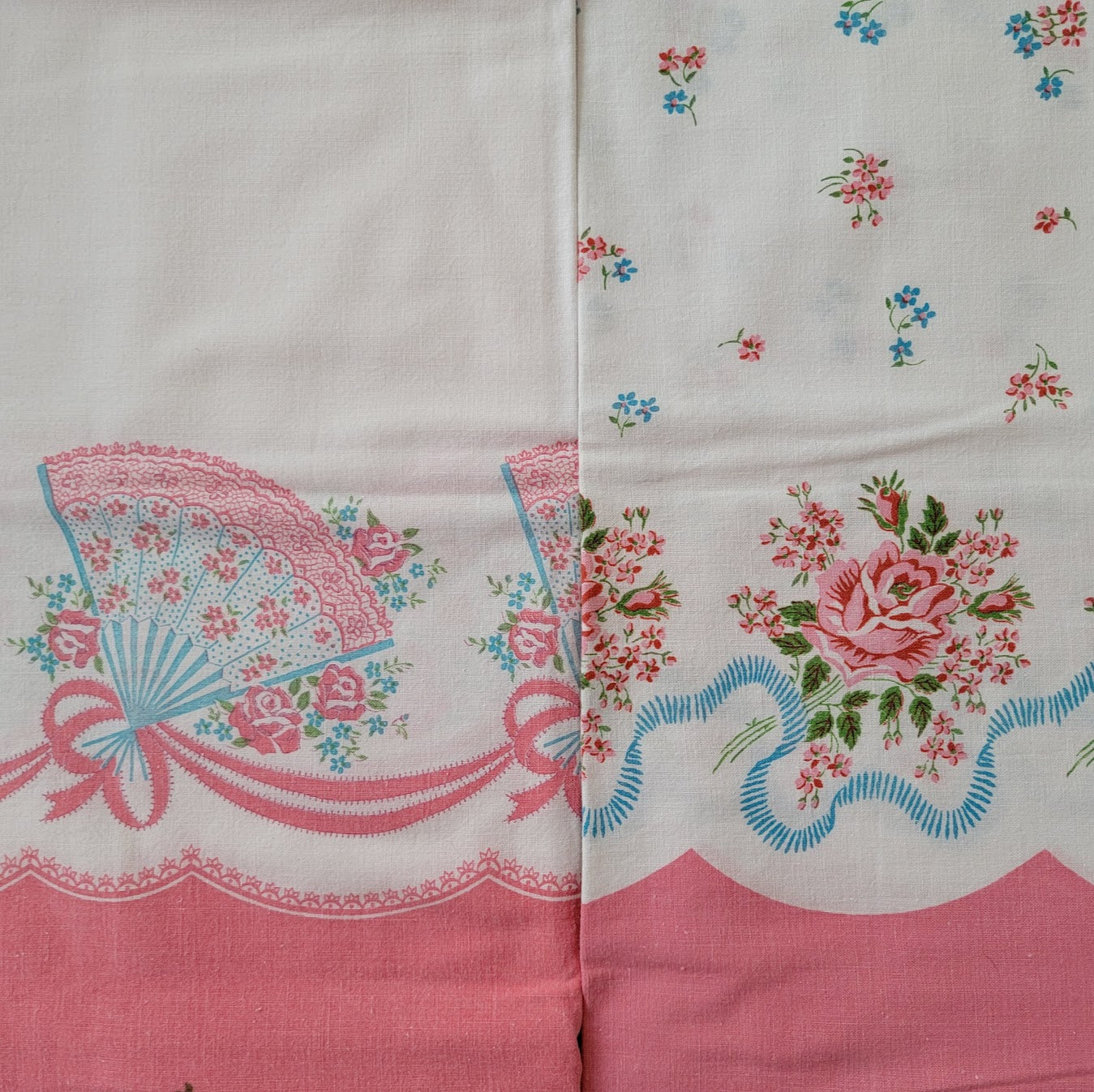 Paper bags began to replace feed sacks as the cheapest option for dry goods transportation. Feed sacks once again began to carry the “thrifty” stigma, and advertising during the 1950s began to refer to them as cotton bags (a bit more refined). Mail order catalogs, company-sponsored design competitions and fashion shows all tried to maintain the interest and use of feed sacks. Bag manufacturers began utilizing novelty prints to generate interest. There were even Disney prints[10]! These efforts carried into the 1960s, but ultimately the desire for the bags had dwindled. The economic boom following World War II had reduced the need for thrift. By 1961, nearly all feed sack production had ceased.