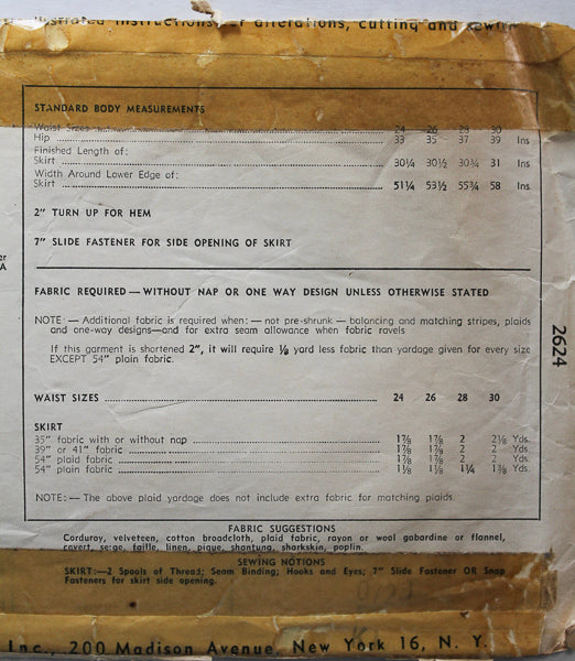 Size: Waist 26 Hip 35. Note that vintage sizing is different from modern sizing. See back of envelope for further pattern size details!
