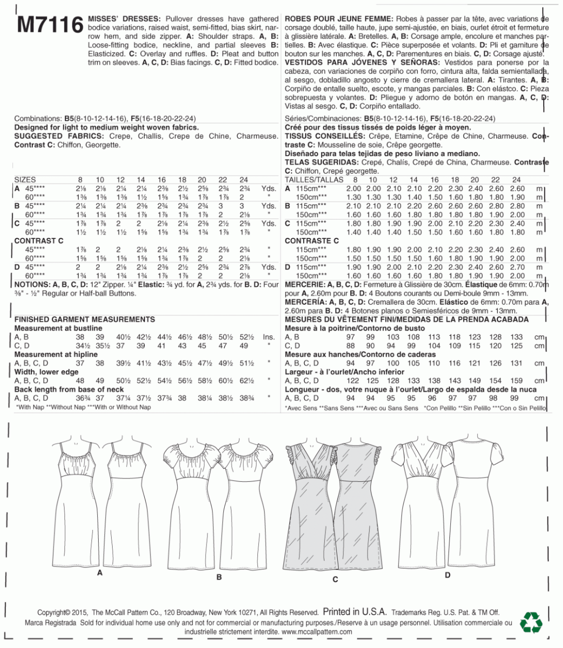 Sizes: B5 (8-16) or F5 (16-24) - See back envelope for additional size information. This is a multi-sized pattern.