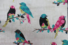 Beautiful multi-colored bird print on beige background. Cotton Canvas.