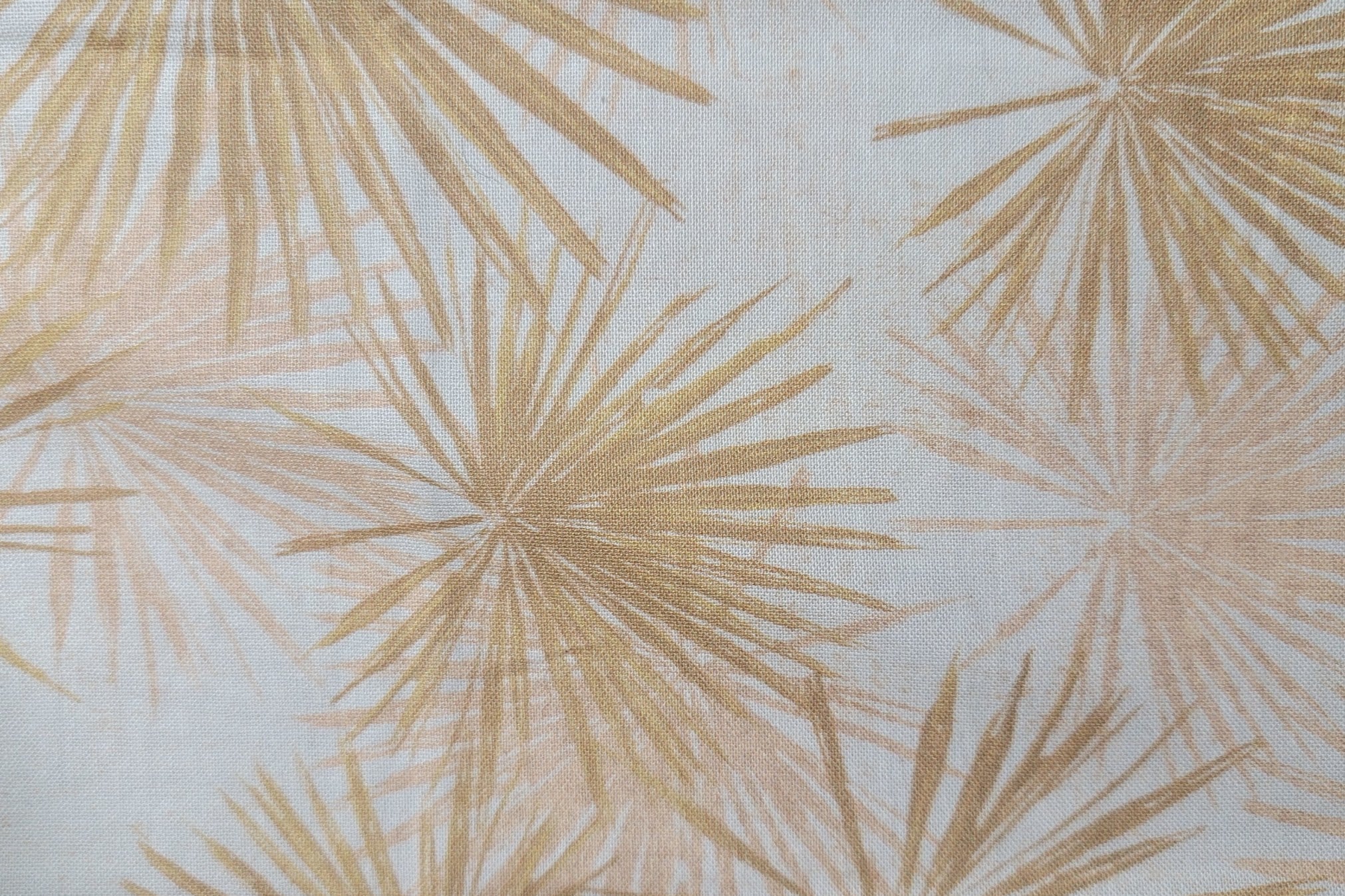Shades of beige fan palm prints on white cotton background. Fat Quarter (18" x 21").