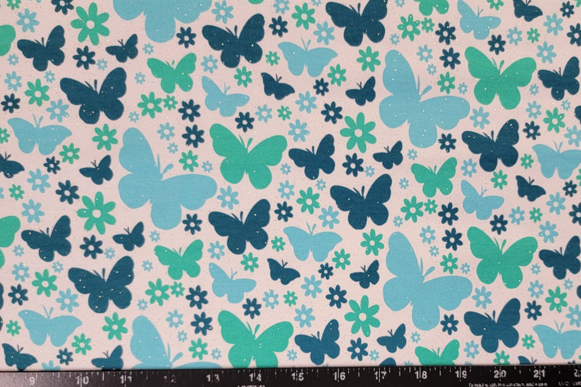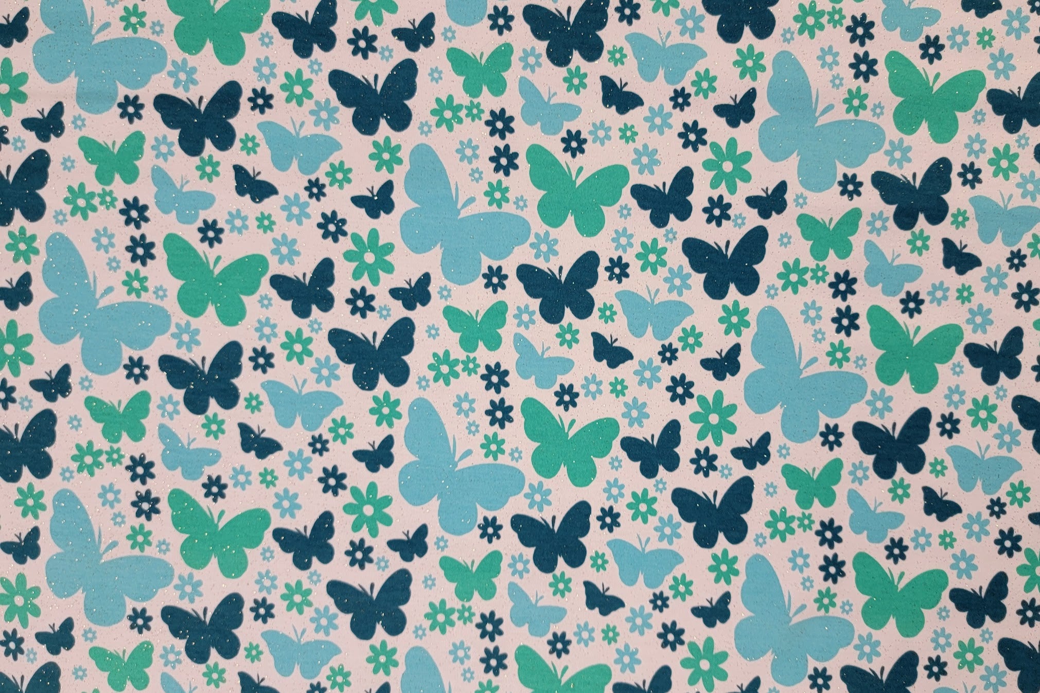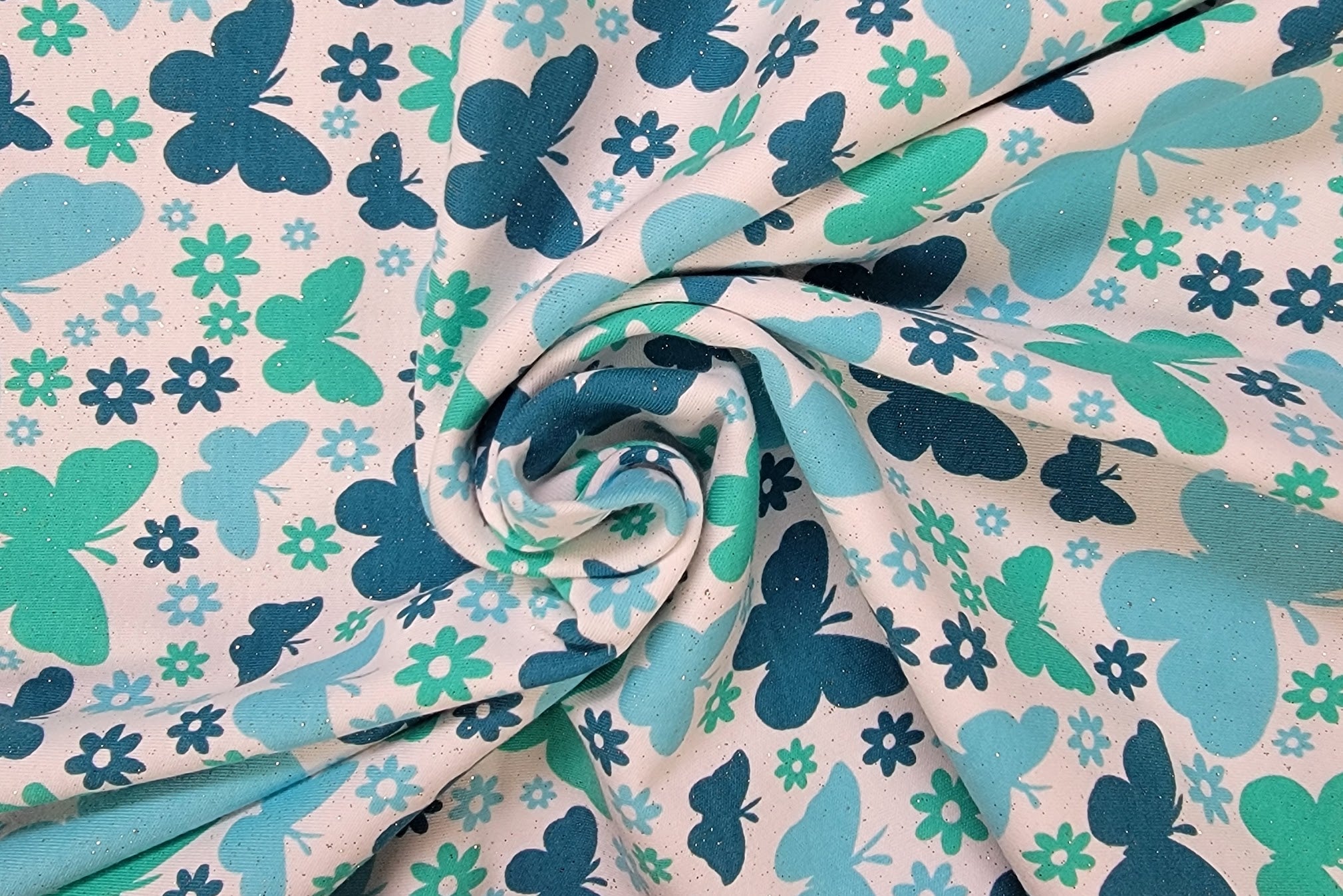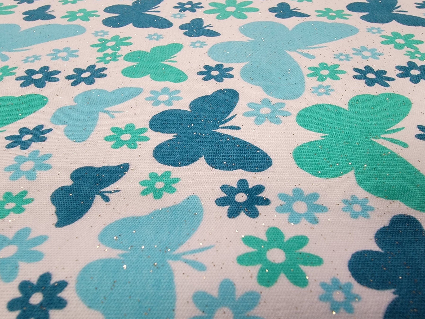 Blue Butterfly Pop! Interlock Knit Fabric