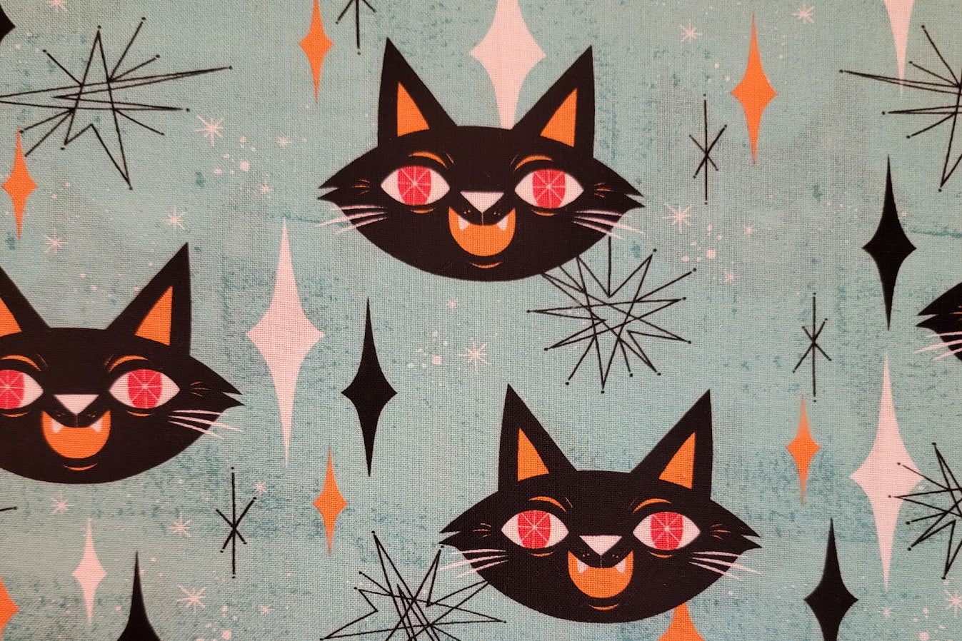 Retro Cats on Aqua Cotton Fabric