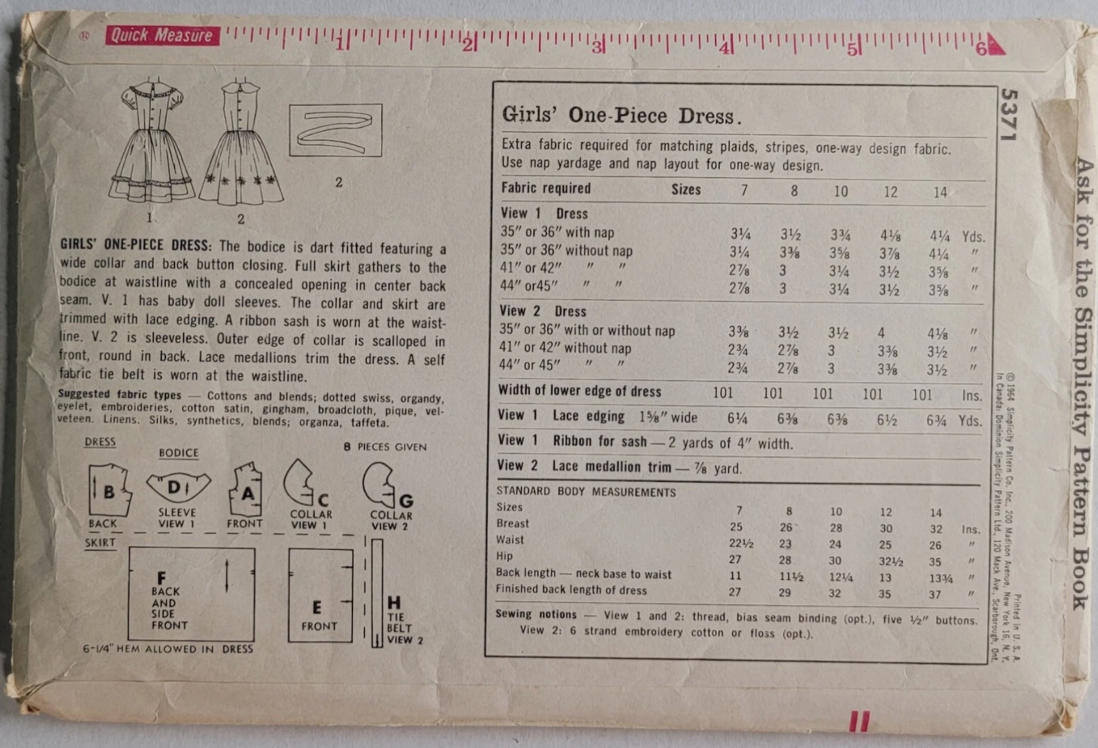 Simplicity 5371 - Girls' One-Piece Jiffy Dress