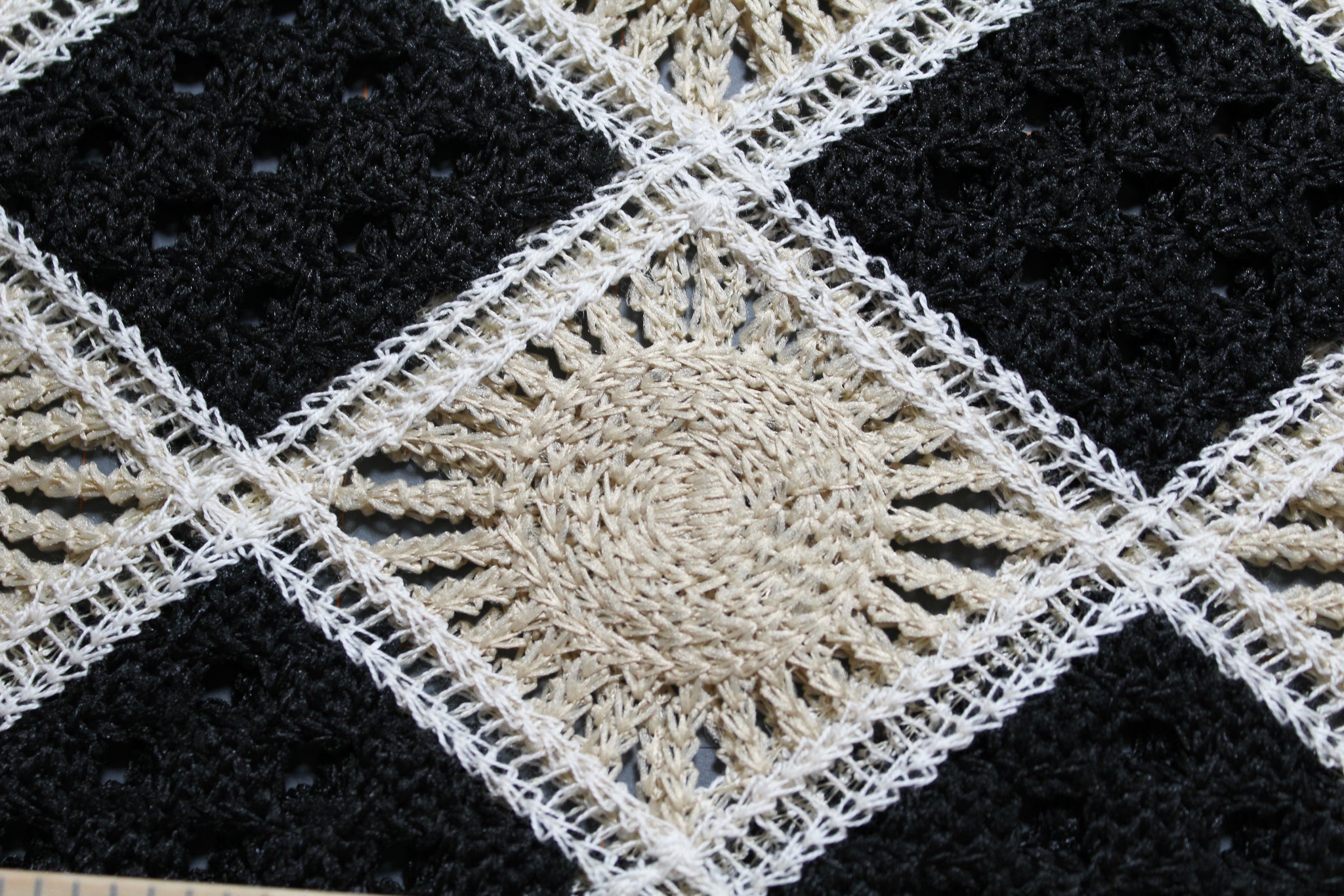 Black and Tan Machine Crochet