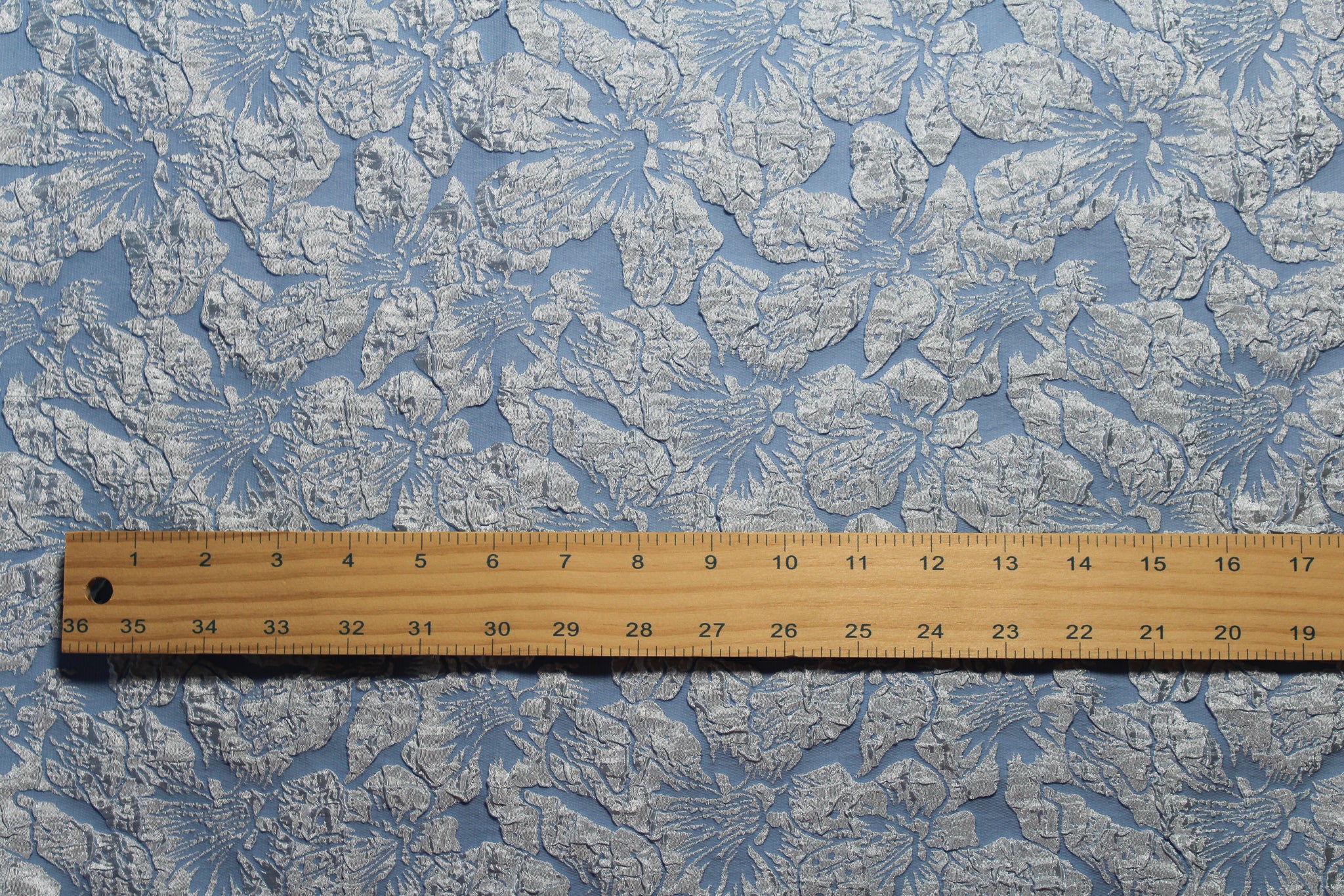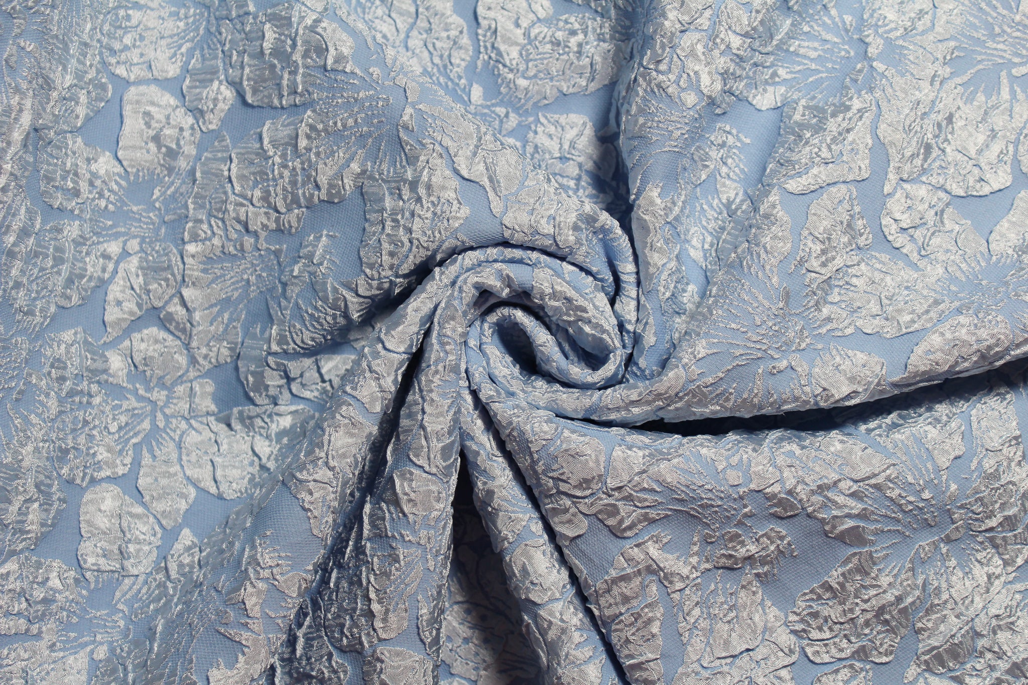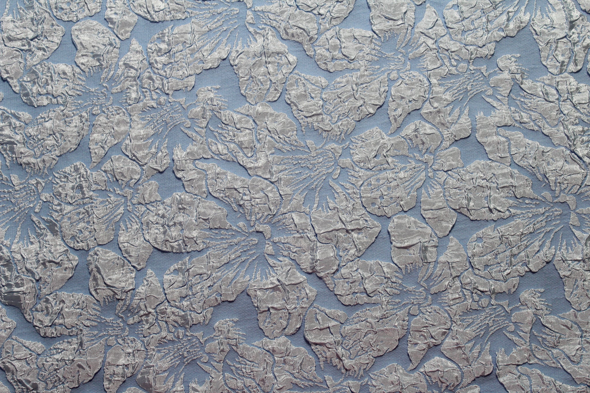 Blue jacquard with textured floral design.