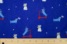 Patriotic dogs on dark blue cotton jersey knit. Soft to the touch! POP! branded fabric.