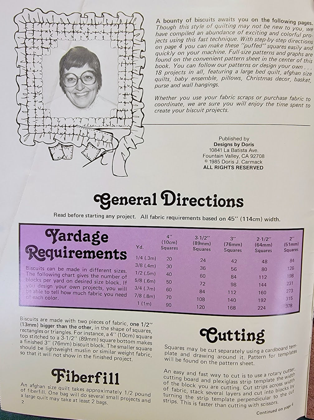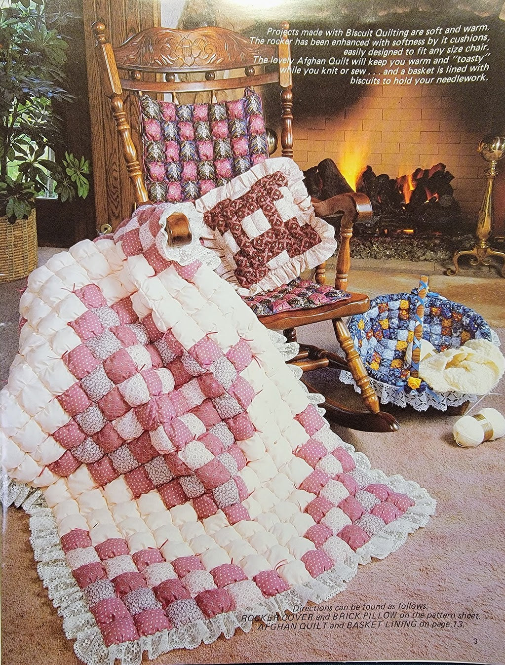 This is a recovered pattern booklet, "Easy Biscuit Quilting". The booklet is a guide for how to make puff quilts! Appears unused. Pattern included.