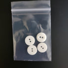 Recovered 4 piece white button set. Two holes to attach buttons to fabric.