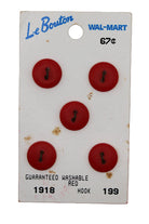 Package of 5 red, circular buttons. Style number 199. There are 2 holes to attach button to fabric. This is a recovered product!
