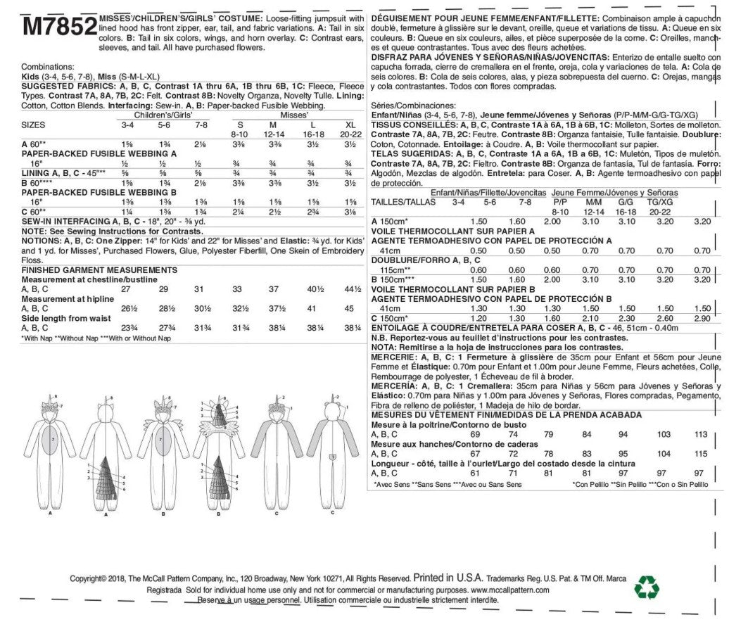 McCall's M7852 - Child's Costume.