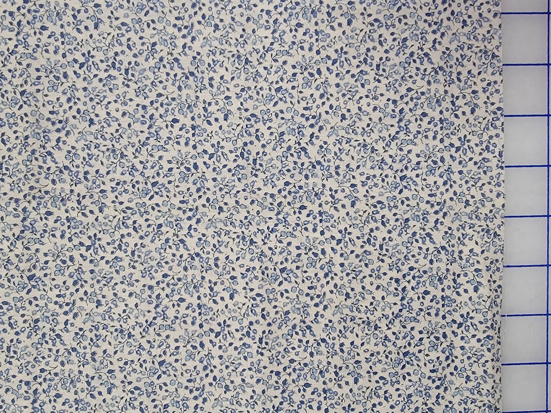 Small blue florals on a white cotton background. This is a recovered fabric. Fat Eighth (9" x 22")