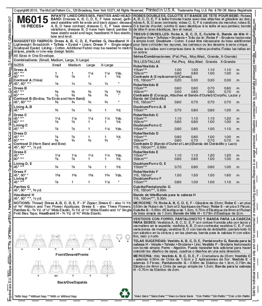 McCall's M6015 - Infant's Lined Dress.