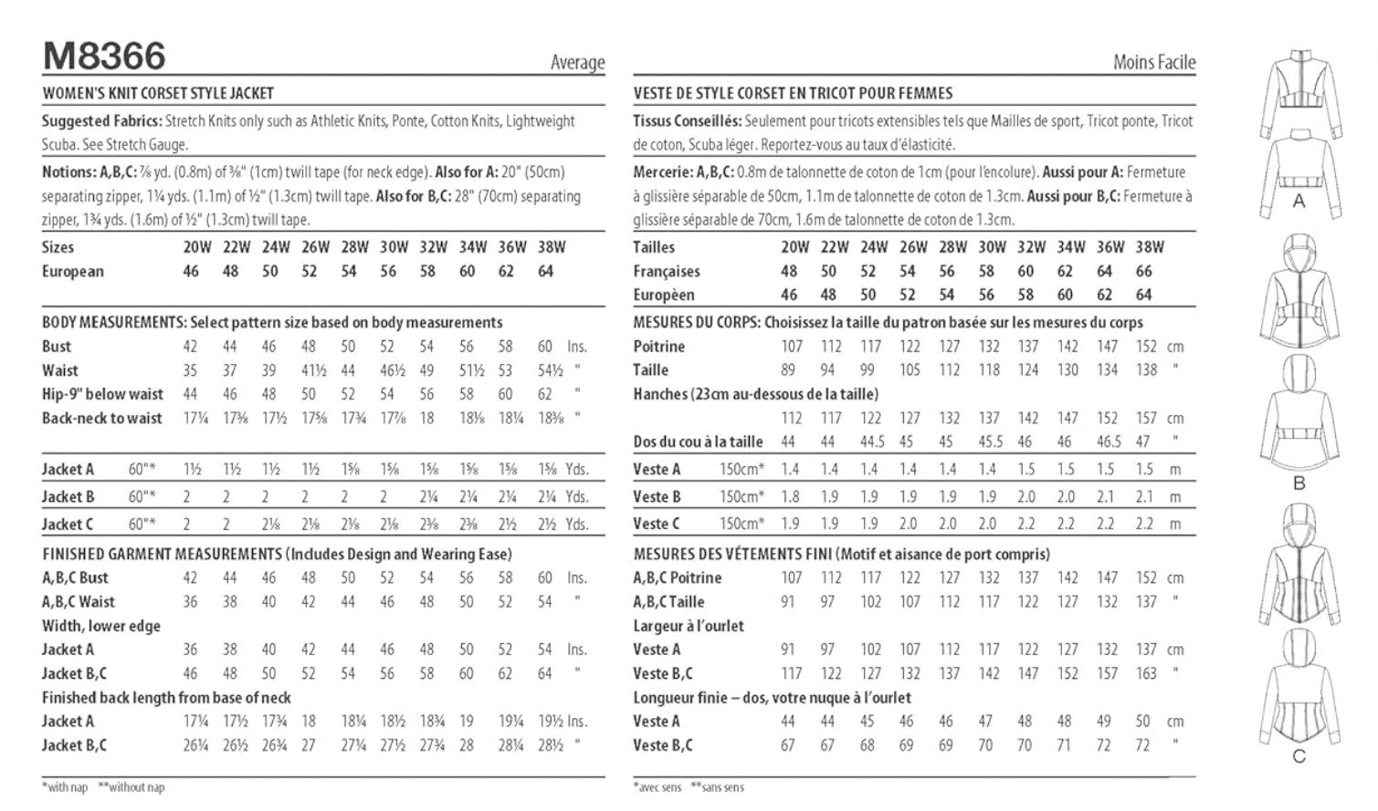 New and vintage patterns that include jackets, coats, or vests.