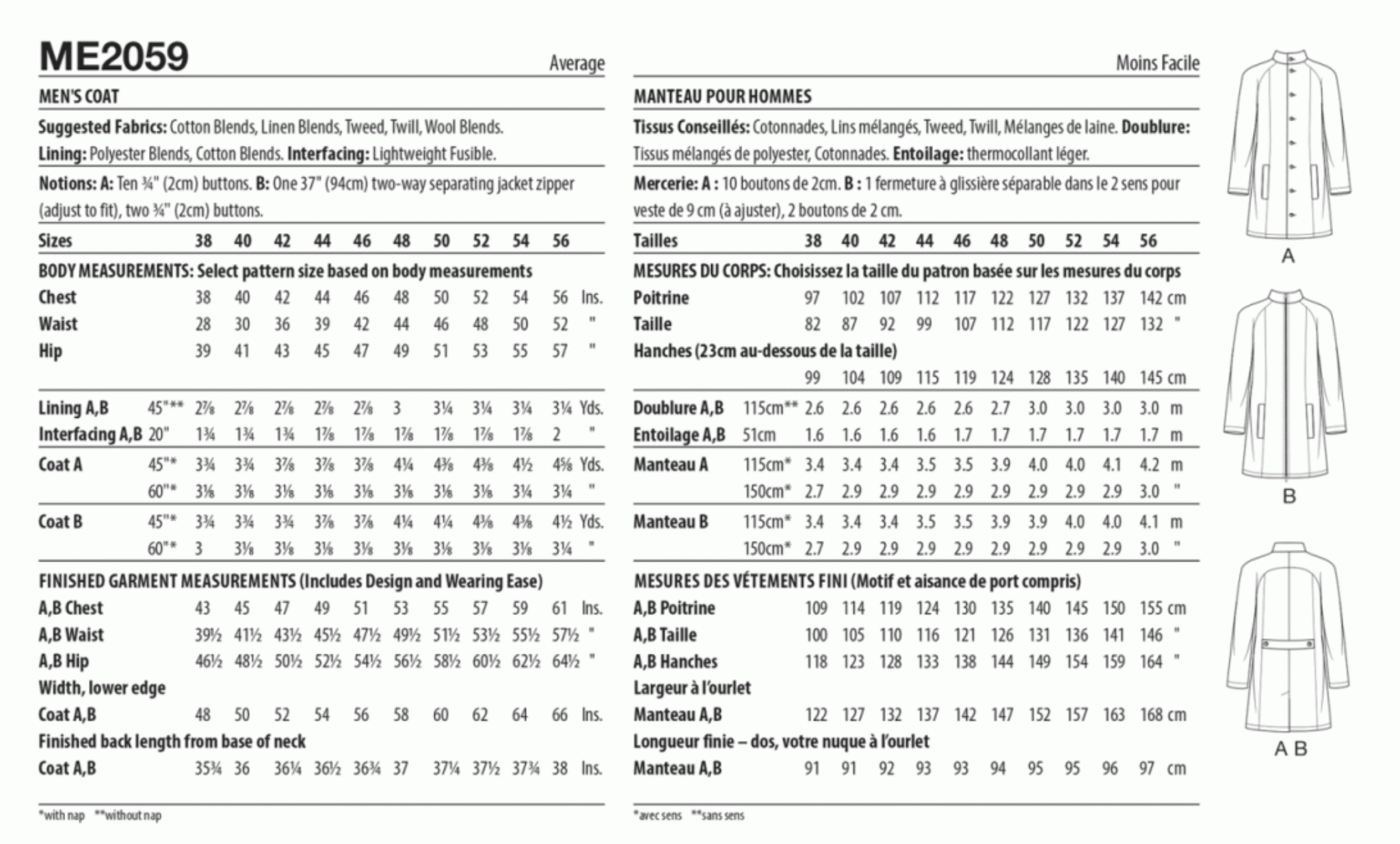 Size: AA (38-46) or BB (48-56) - See back envelope for additional size information. This is a multi-sized pattern.