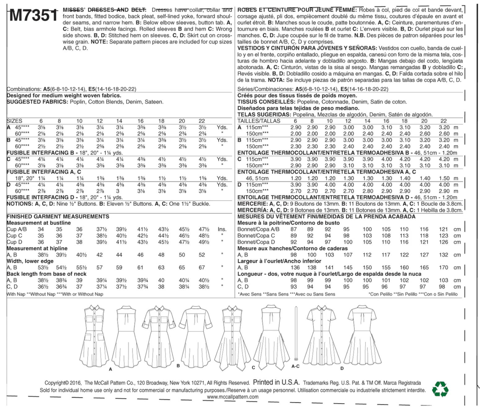 The McCall Pattern Company was founded in New York in 1870 by Scottish tailor James McCall, who began by designing and selling his own sewing patterns. To advertise, he launched a fashion journal, The Queen, which evolved into McCall's Magazine. The company expanded its offerings to include home decor and became one of the leading pattern companies, known for its variety and quality. The McCall Pattern Company created the very first printed sewing patterns, completely revolutionizing the industry. McCall held the patent rights for printed patterns from 1919 to 1938.