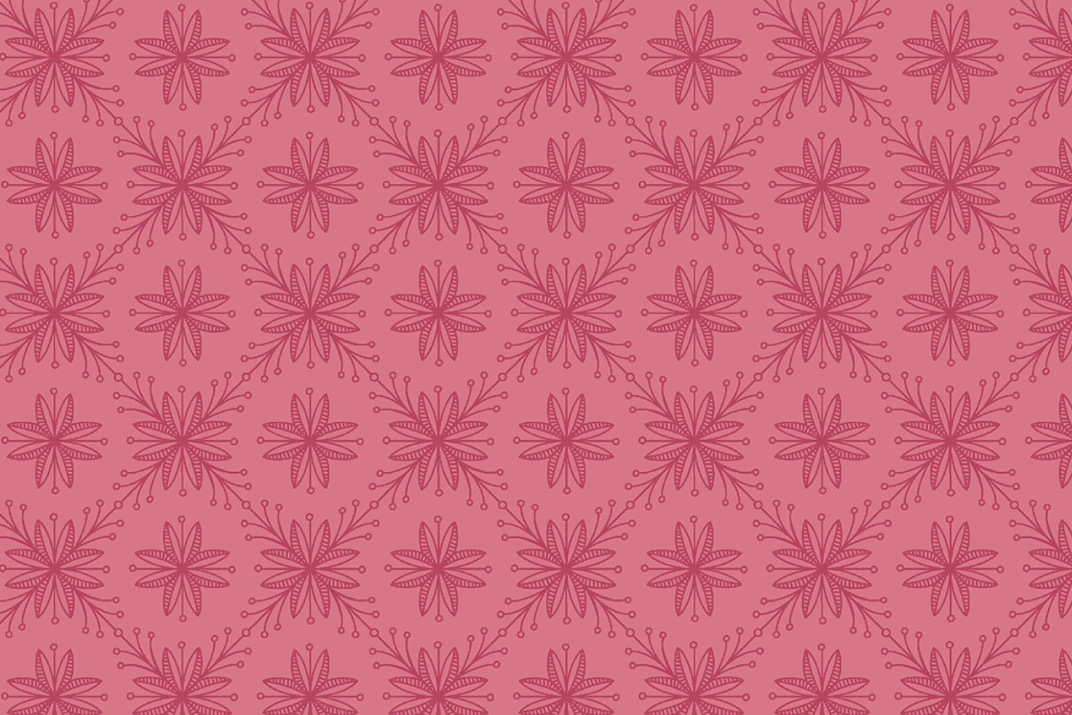 Dark pink floral Poinsettia grid print on a lighter pink cotton background. From the Alpine Valley by Shelley Cavanna Collection.