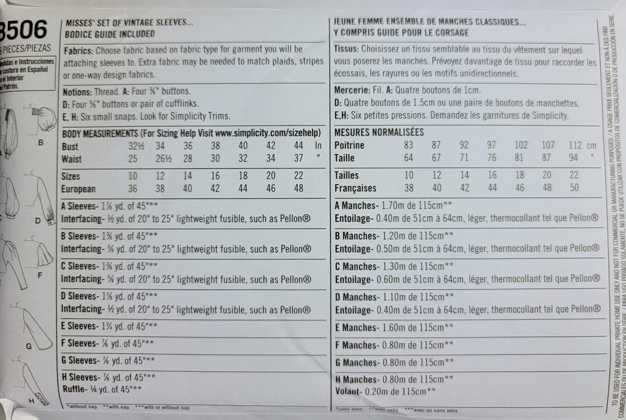Simplicity 8506 Sewing Pattern: 1930s Vintage - modern reproduction pattern for Misses' Sleeves