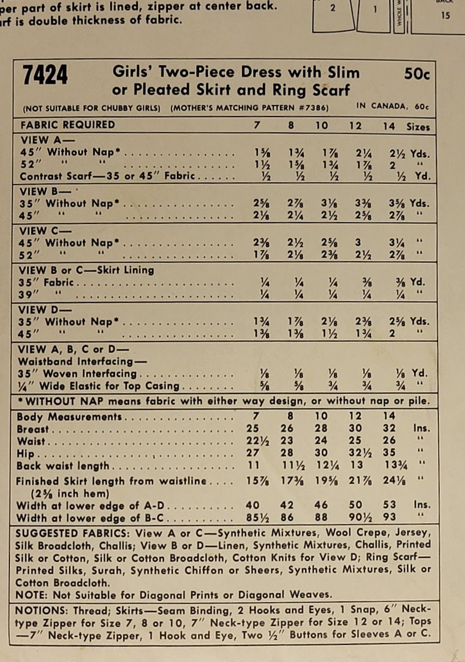 Size: Size 8. Note that vintage sizing is different from modern sizing. See back of envelope for further pattern size details!