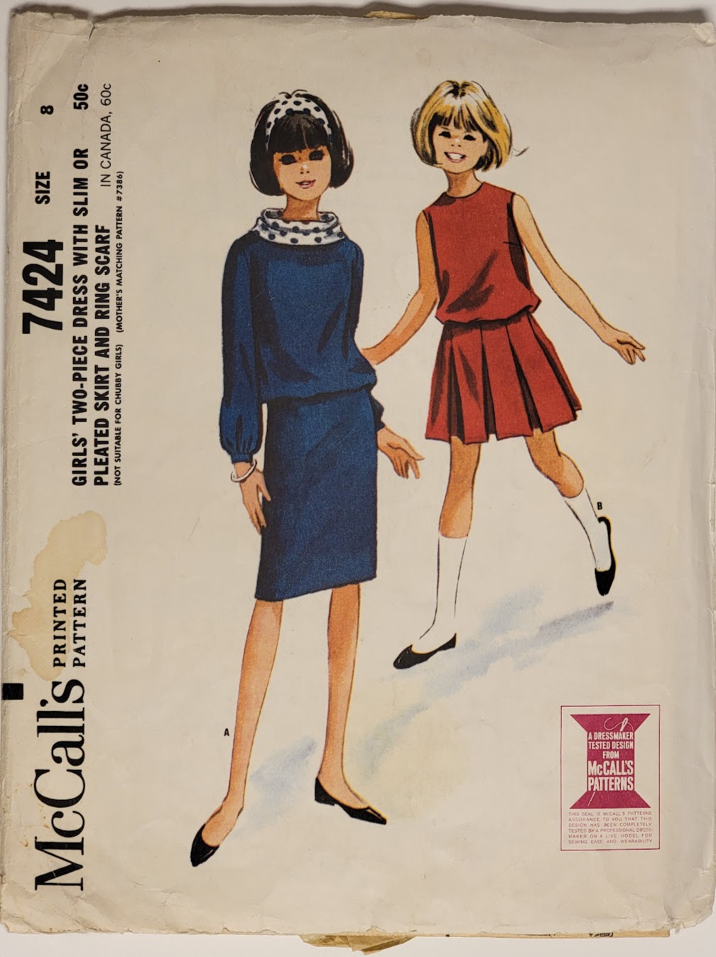 McCall's 7424 - Girls' Two-Piece Dress with Slim or Pleated Skirt and Ring Scarf