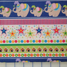 Multiple circus motifs on a white cotton background. This is a recovered 1 yard cut.