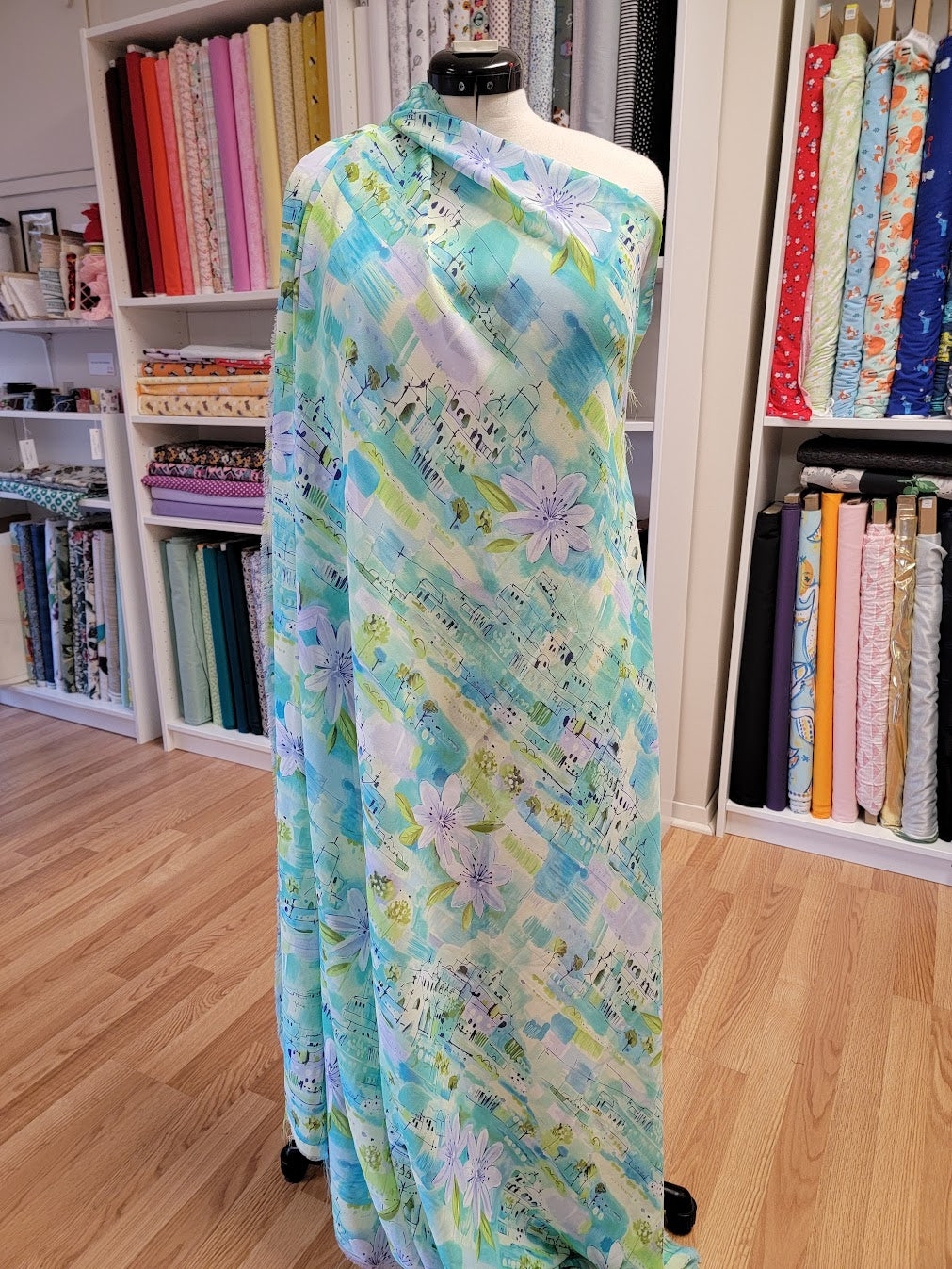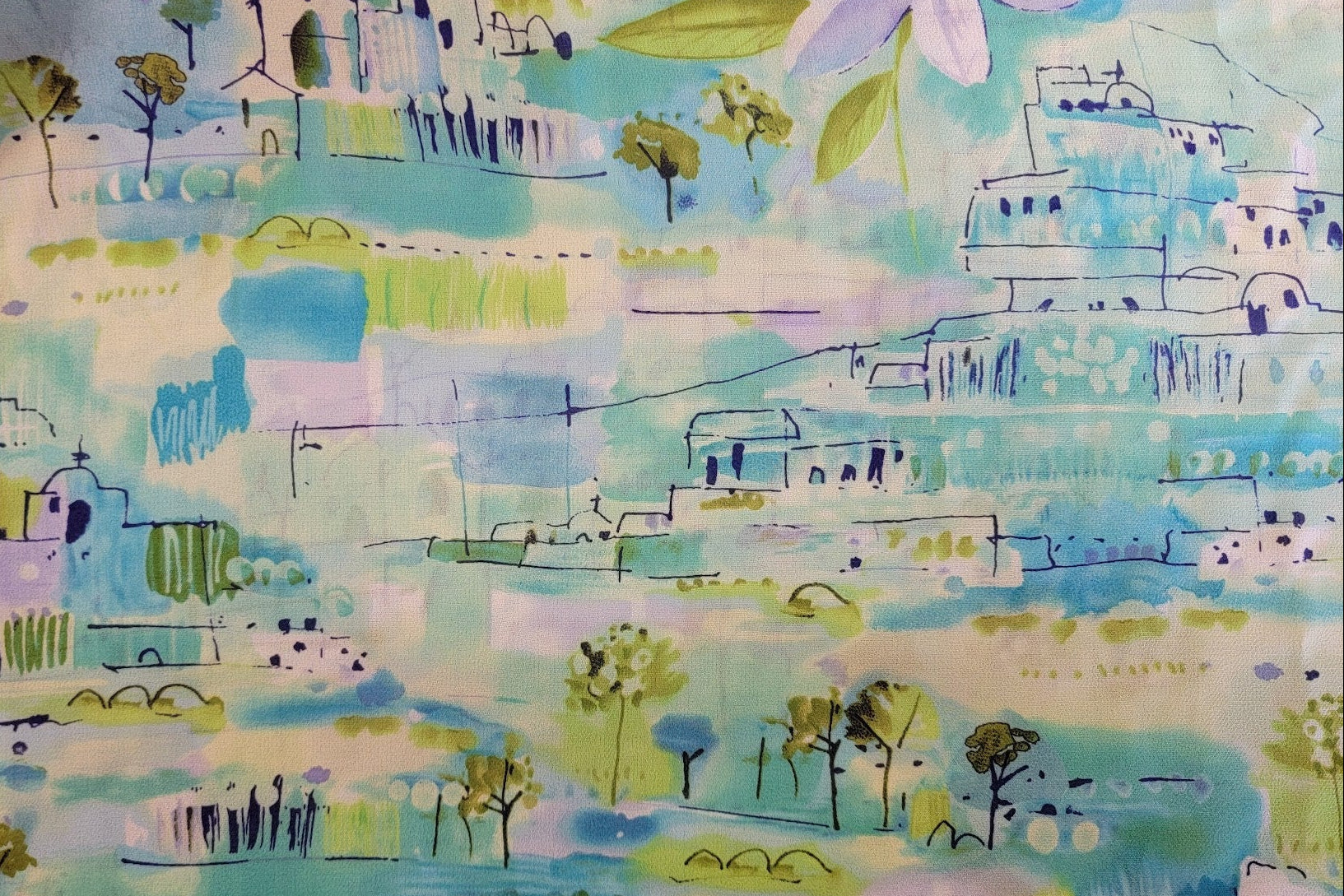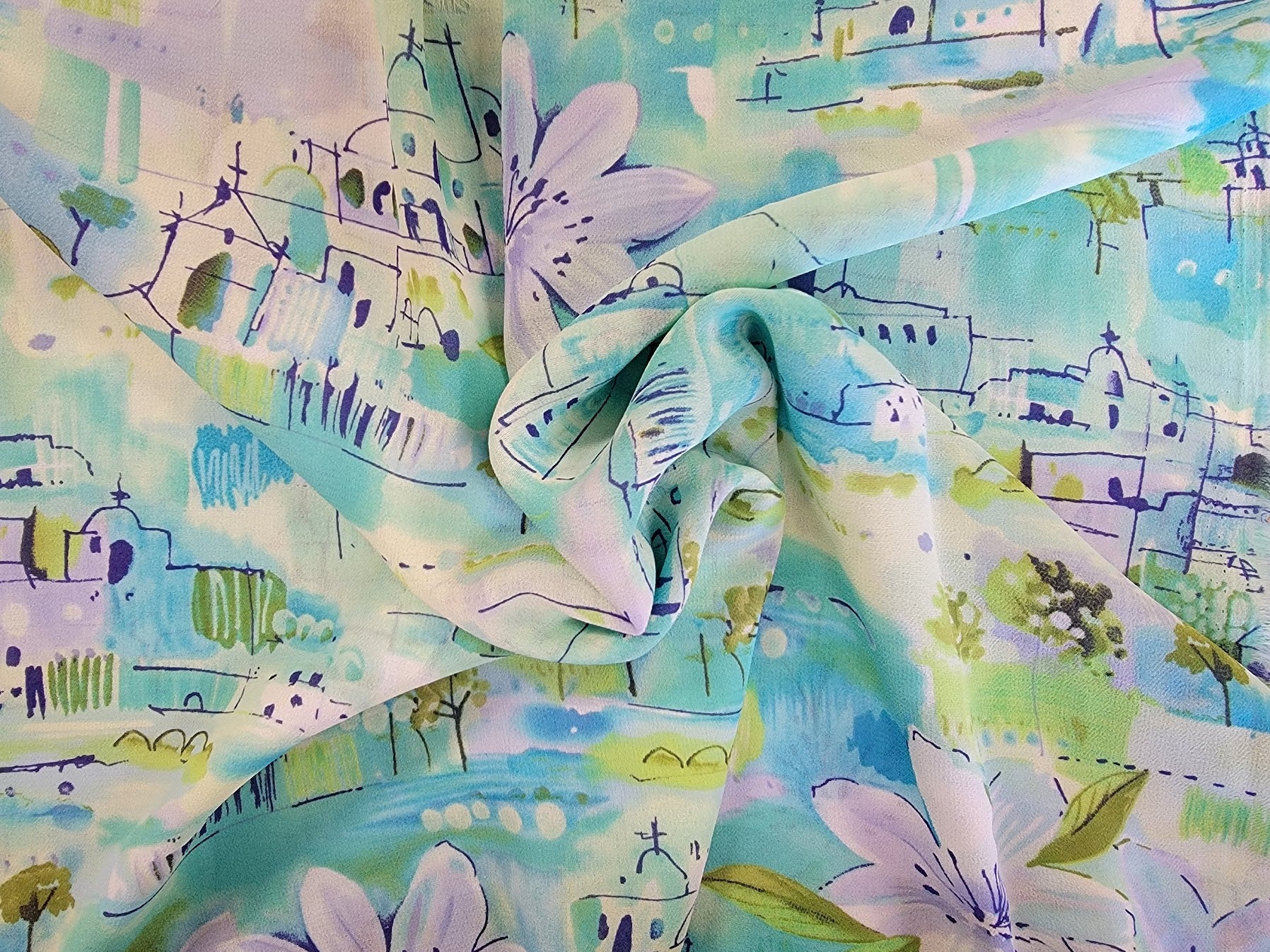 A sheer, light weight, soft and flowing, Greek-inspired print. This is a recovered fabric.