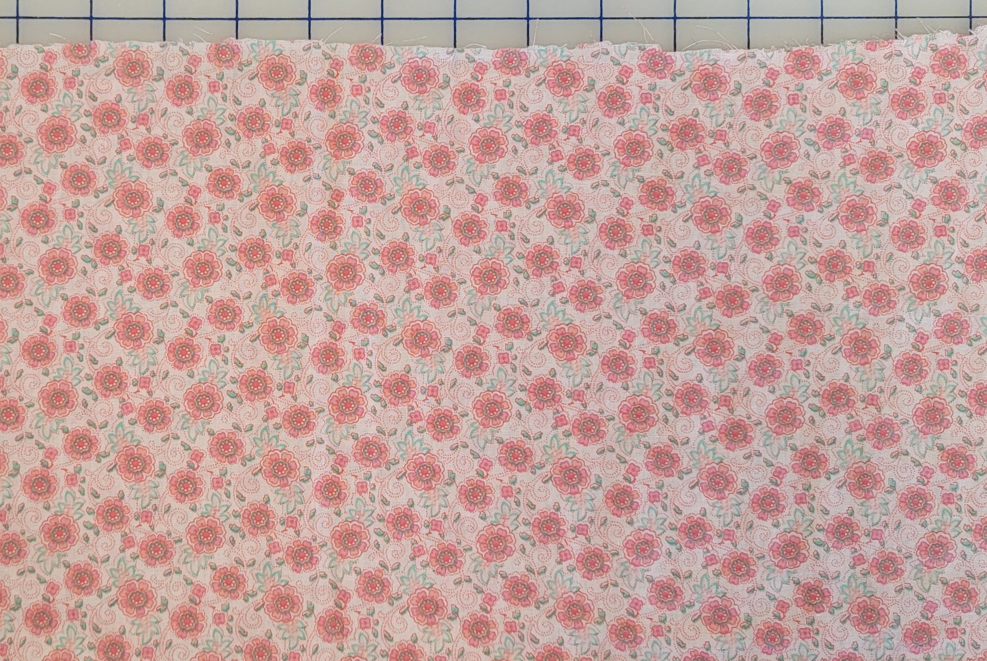 Dark pink flowers on a light pink cotton background. This is a recovered fabric.