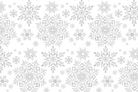This fabric features an elegant design of white and gray snowflakes with a 6-inch repeat pattern, creating a serene winter wonderland effect. The snowflakes are intricately detailed, with some surrounded by delicate leaves, adding a touch of nature to the frosty theme.