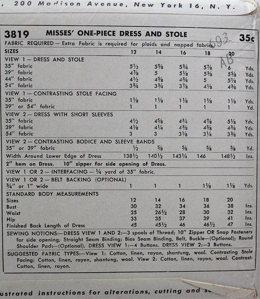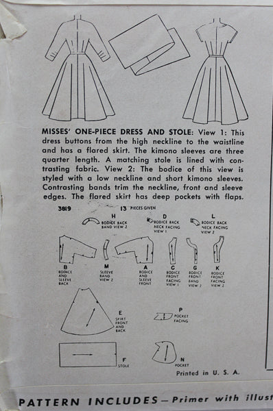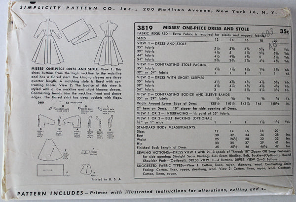 Simplicity 3819 - Misses' One-Piece Dress and Stole
