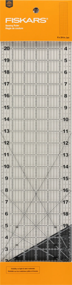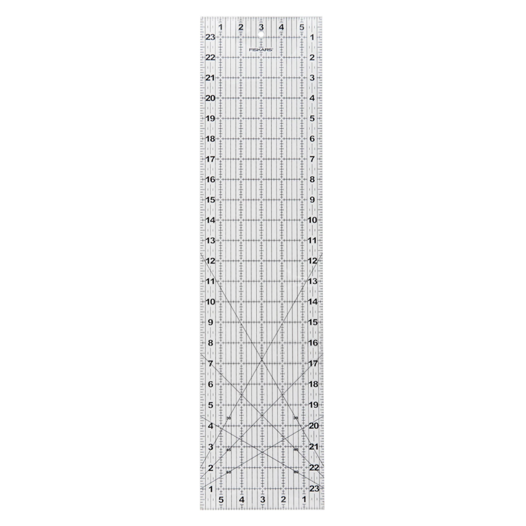 Acrylic Ruler features easy-to-read grid lines that make cutting strips of fabric from the bolt a snap. It also includes broken grid lines for easy visibility of fabric edges and optional non-slip vinyl feet.