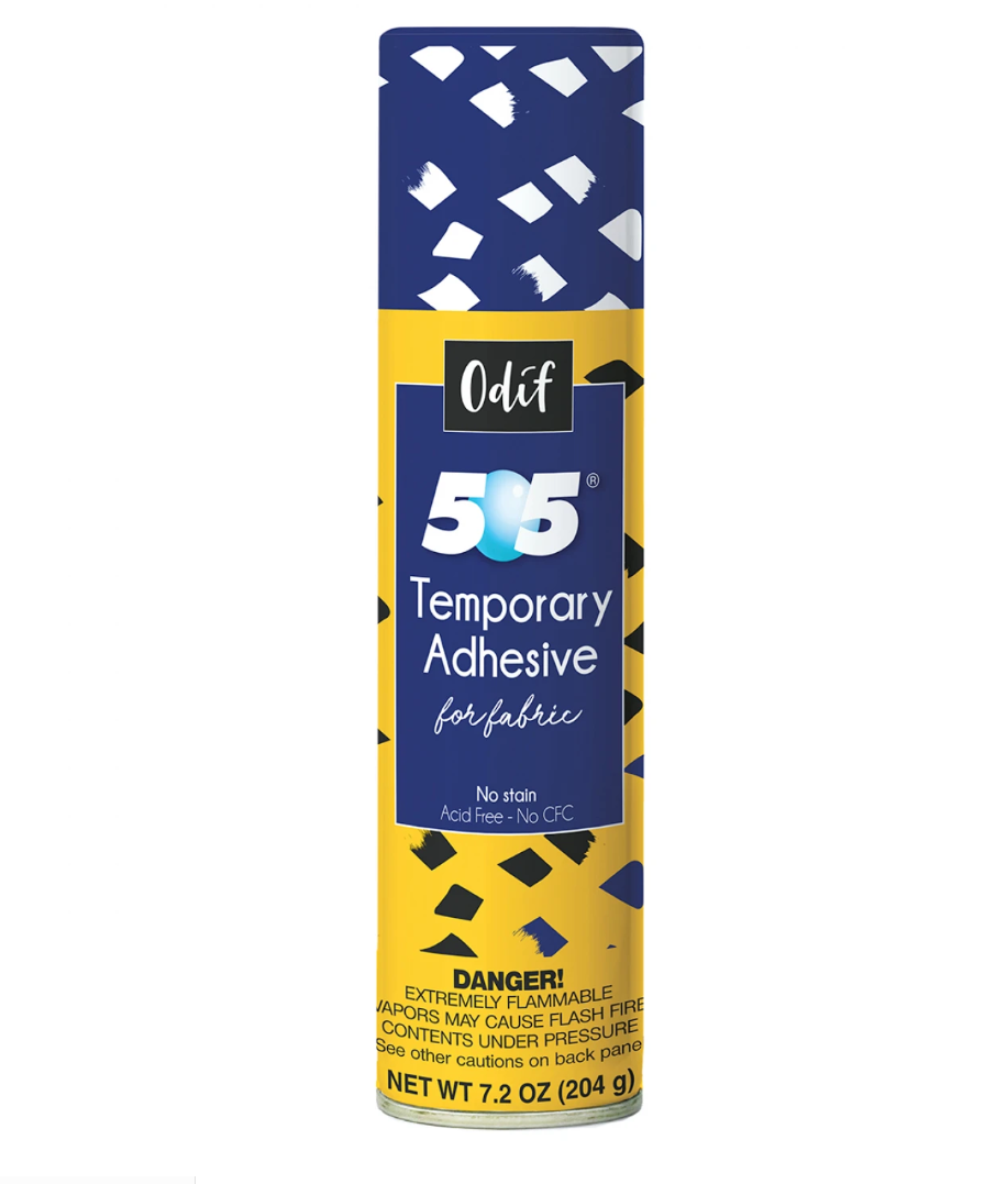 Odif 505 Temporary Fabric Adhesive is ideal for no pin basting of the quilting sandwich. It avoids threading steps and the use of pins. It is also used for temporary and precise holding of the fabric during sewing or machine embroidery. It does not stain the fabric. It evaporates when the fabric is handled and disappears when washed.