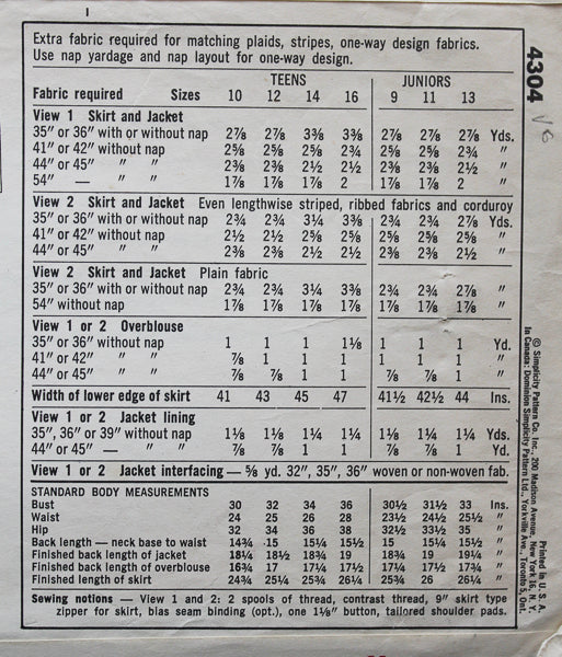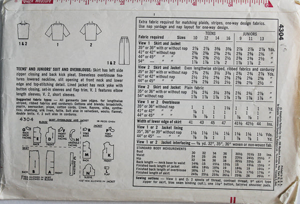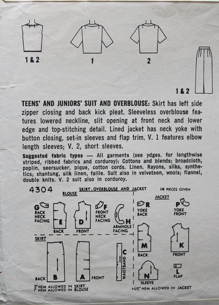 Simplicity 4304 - Teen and Juniors' Suit and Overblouse