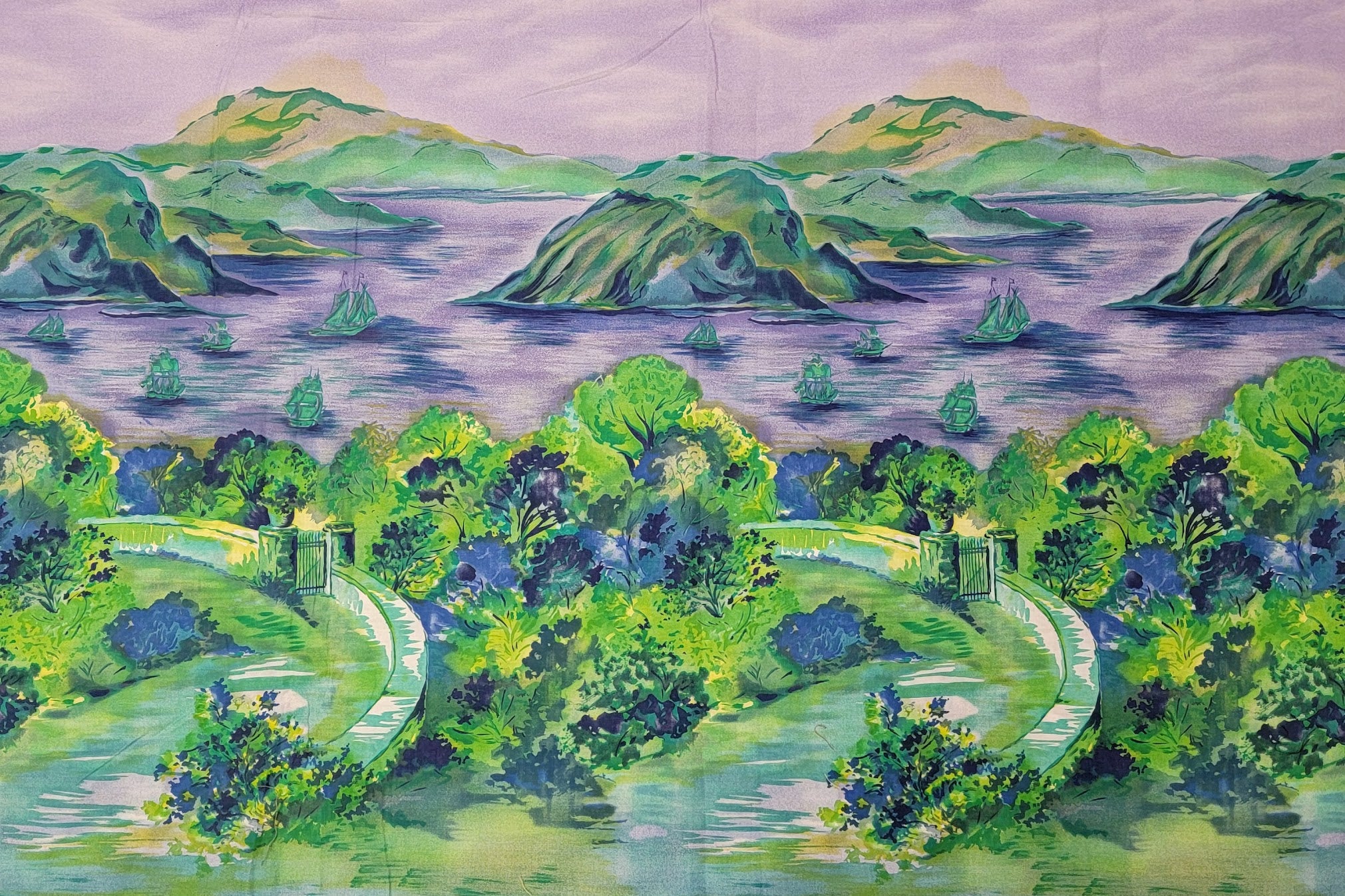 VTG Blue Floral Fabric Fat Eighth 9"x22"