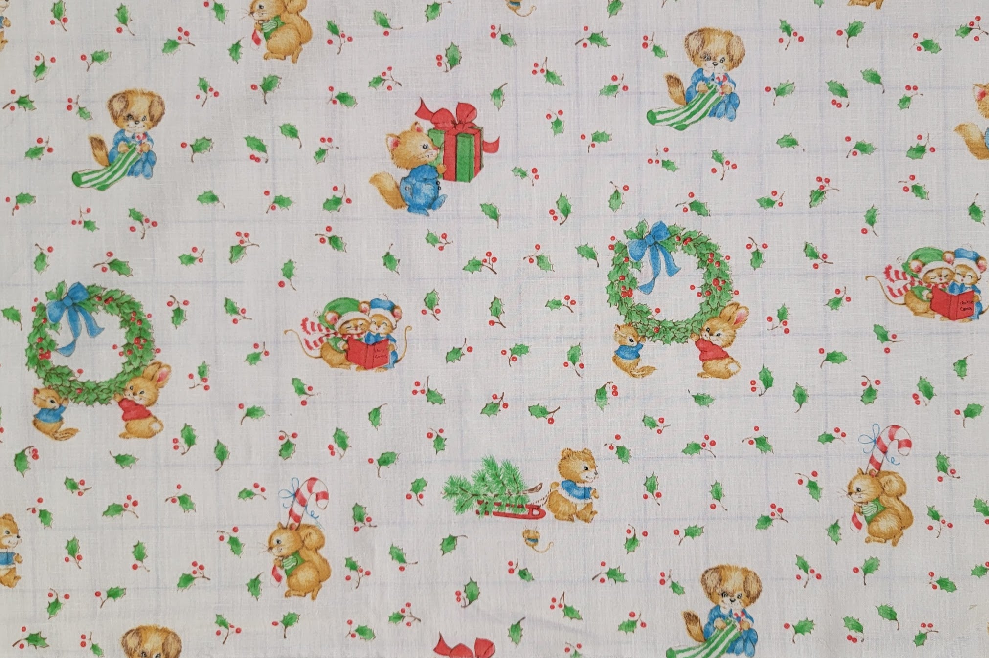 VTG Animal Christmas Cotton Fabric - 1.67yds