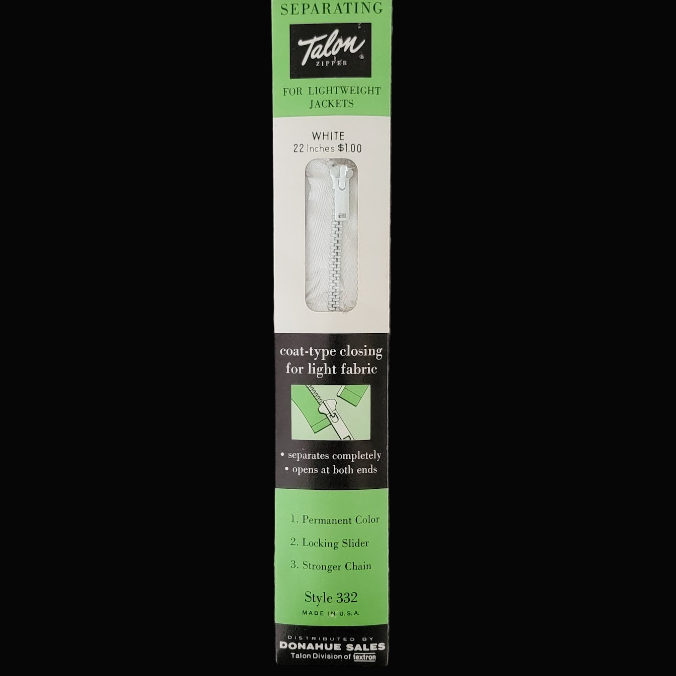 Talon metal zipper. Great for apparel or craft projects! This is a recovered, unused zipper!