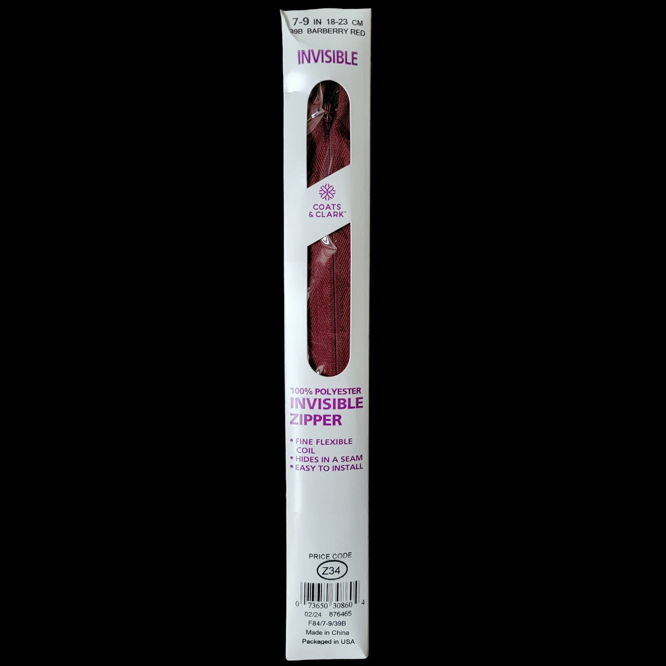 Coats & Clark invisible zippers. Great for apparel or craft projects!