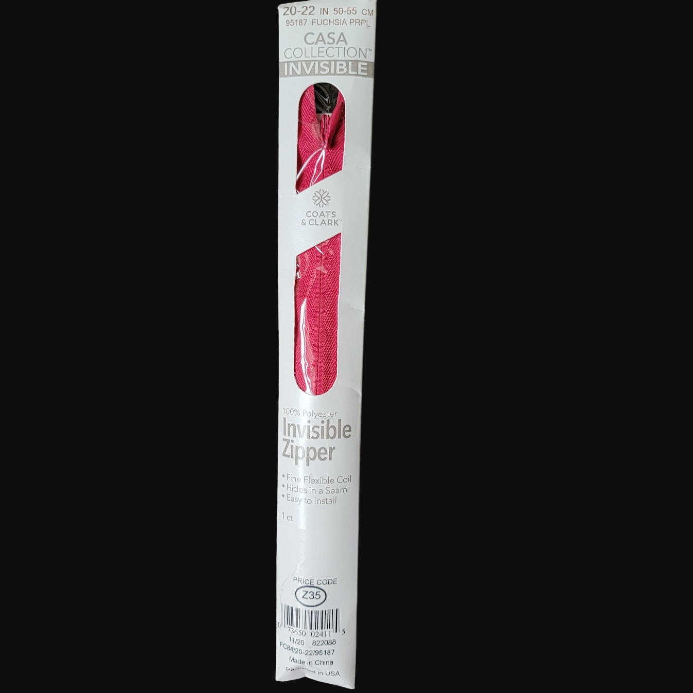 Coats & Clark 20-22" Invisible Zipper Fuchsia Purple