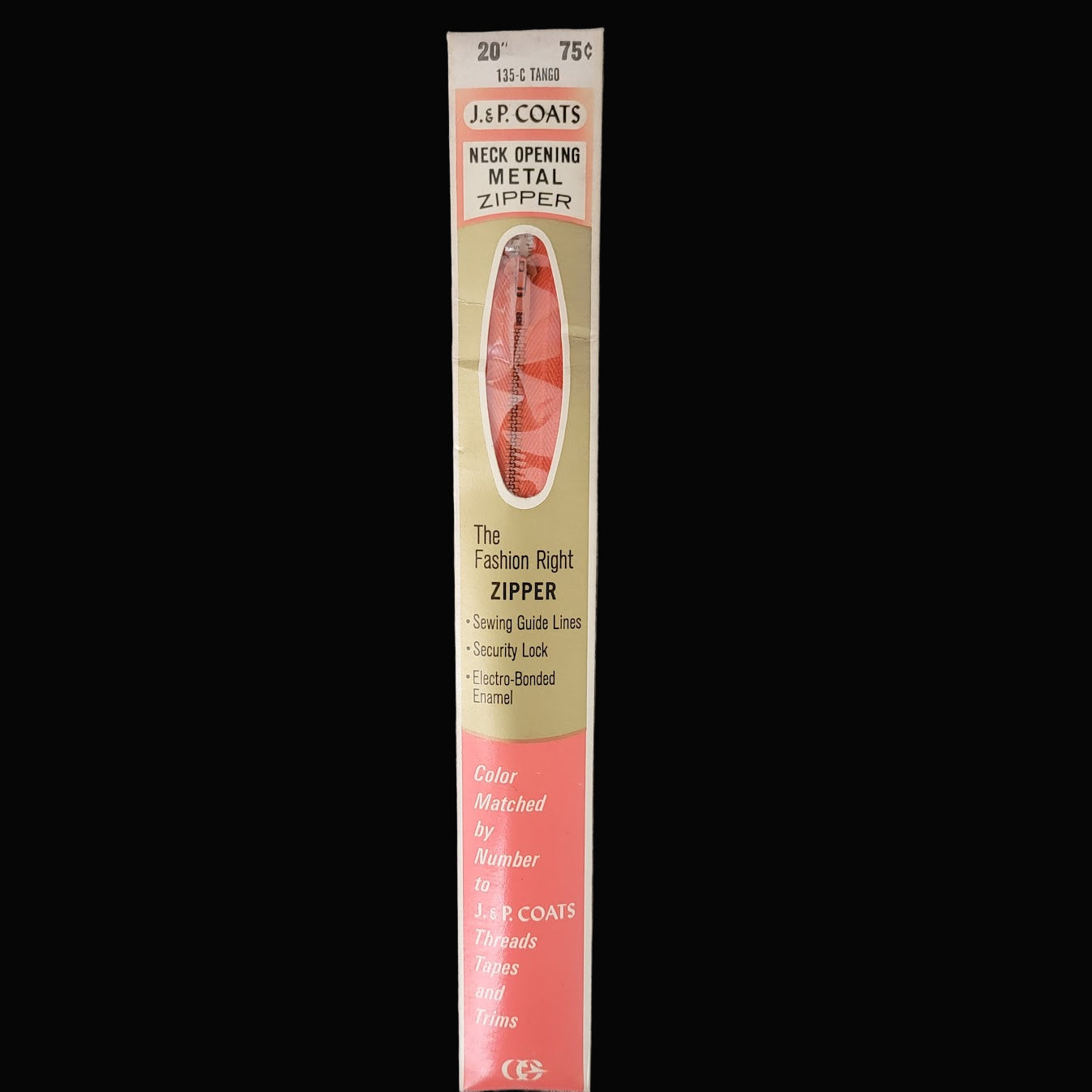 J & P Coats metal zipper. Great for apparel or craft projects!