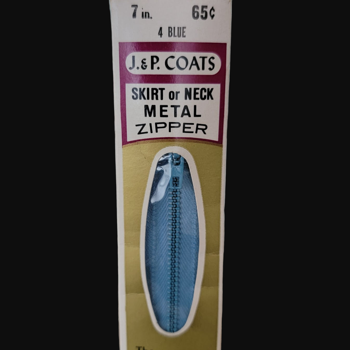 J & P Coats metal zipper. Great for apparel or craft projects! This is a recovered NOS zipper.